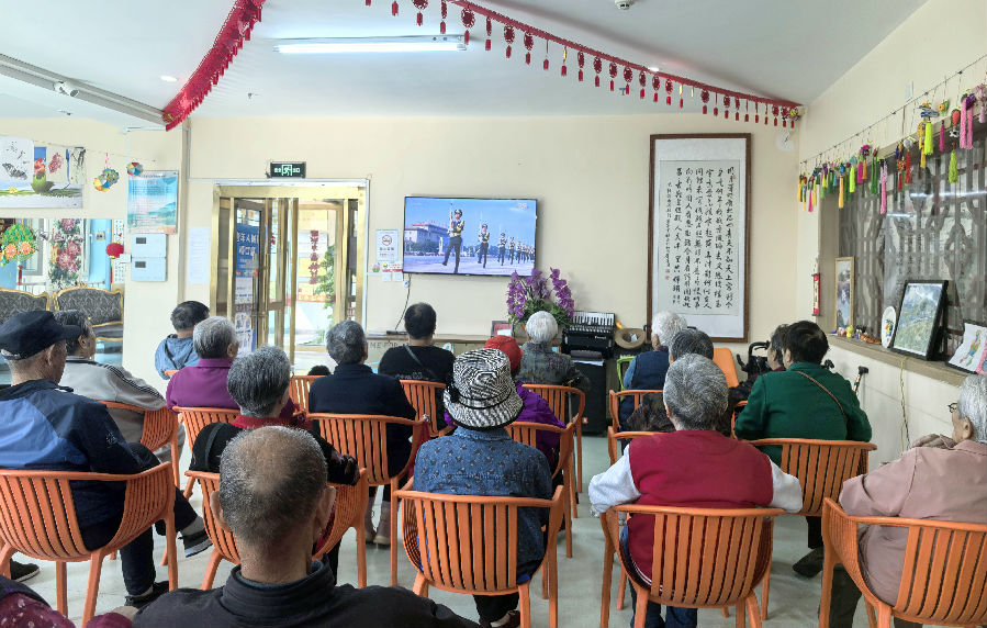 2025年9月3日,纪念中国人民抗日战争暨世界反法西斯战争胜利80周年阅兵式在北京天安门广场隆重举行。和睦康养园组织园区老人及全体党员、在岗职工观看直播,共同感受民族荣光与荣耀,厚植爱国情怀,凝聚奋进力量。